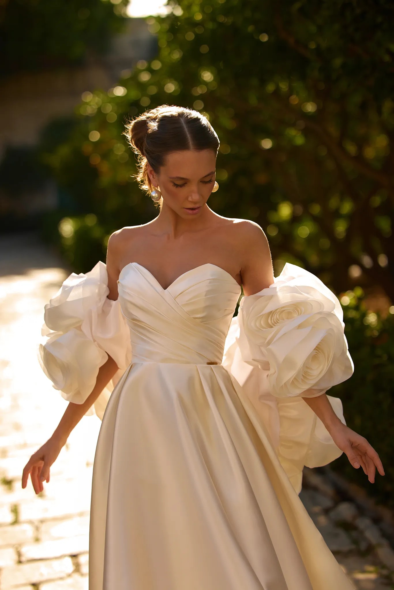 Developed within the atelier through exact tailoring and couture craftsmanship, every creation reflects a modern vision of bridal elegance - disciplined yet fluid, powerful yet composed, refined without compromise.